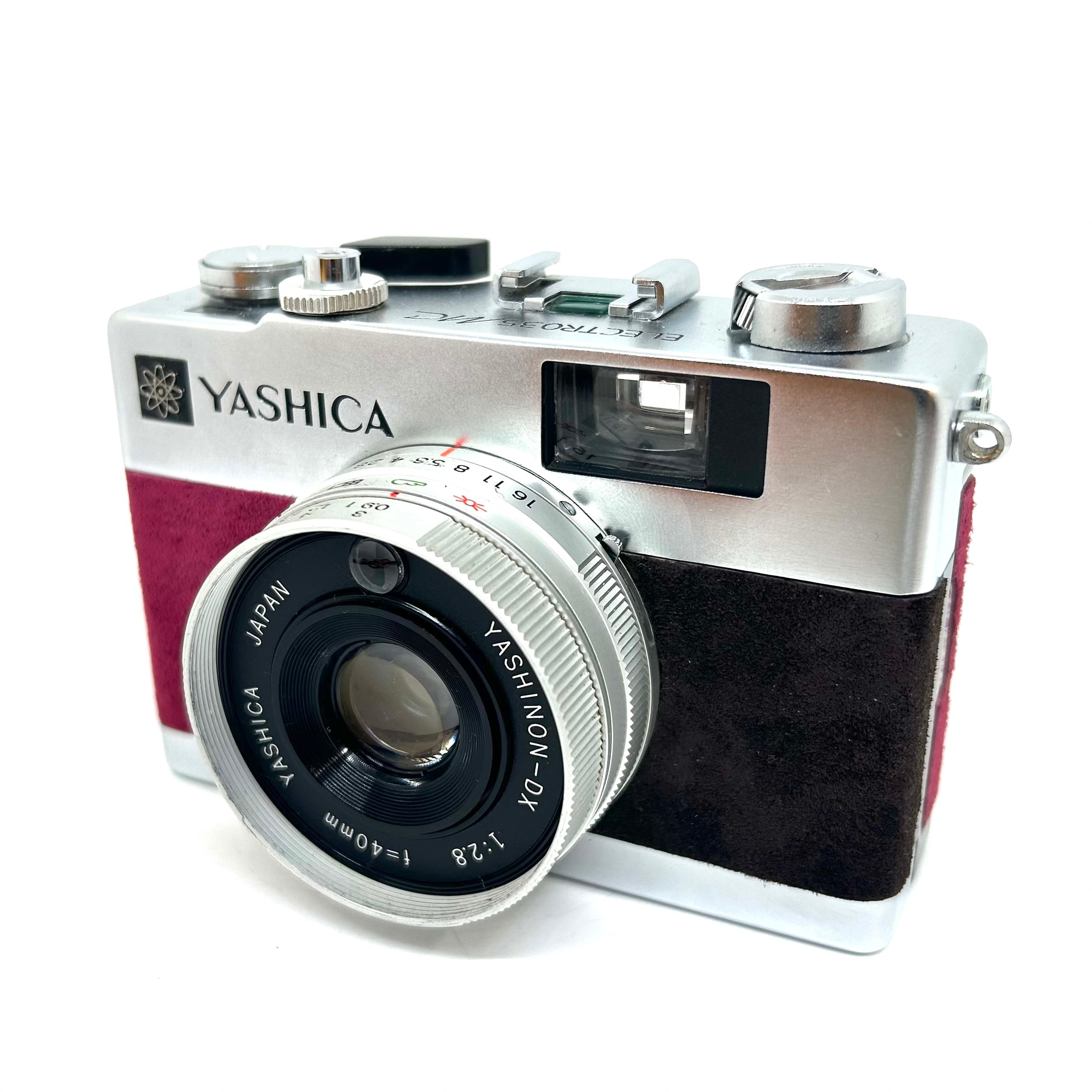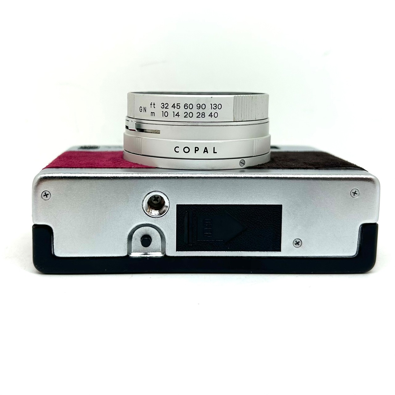 1、フィルムカメラを修理•調整して、表皮をスエードに貼り替えてリメイクしております。