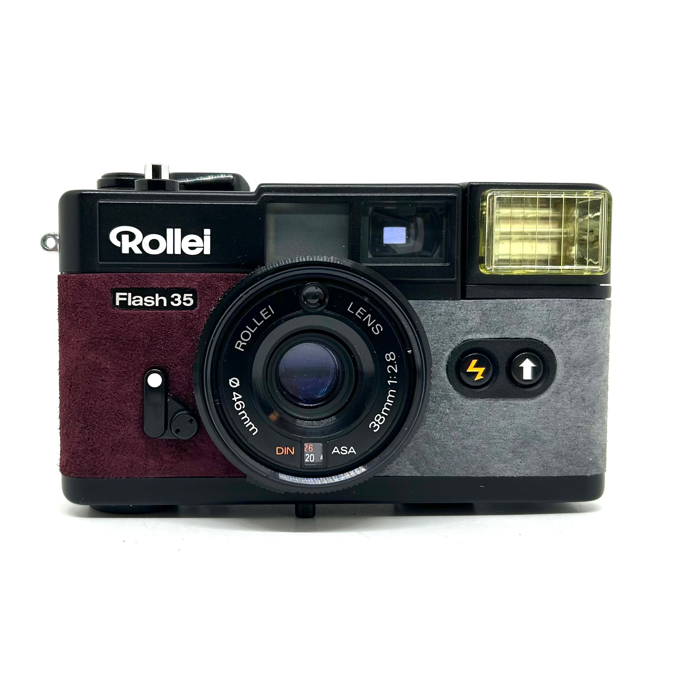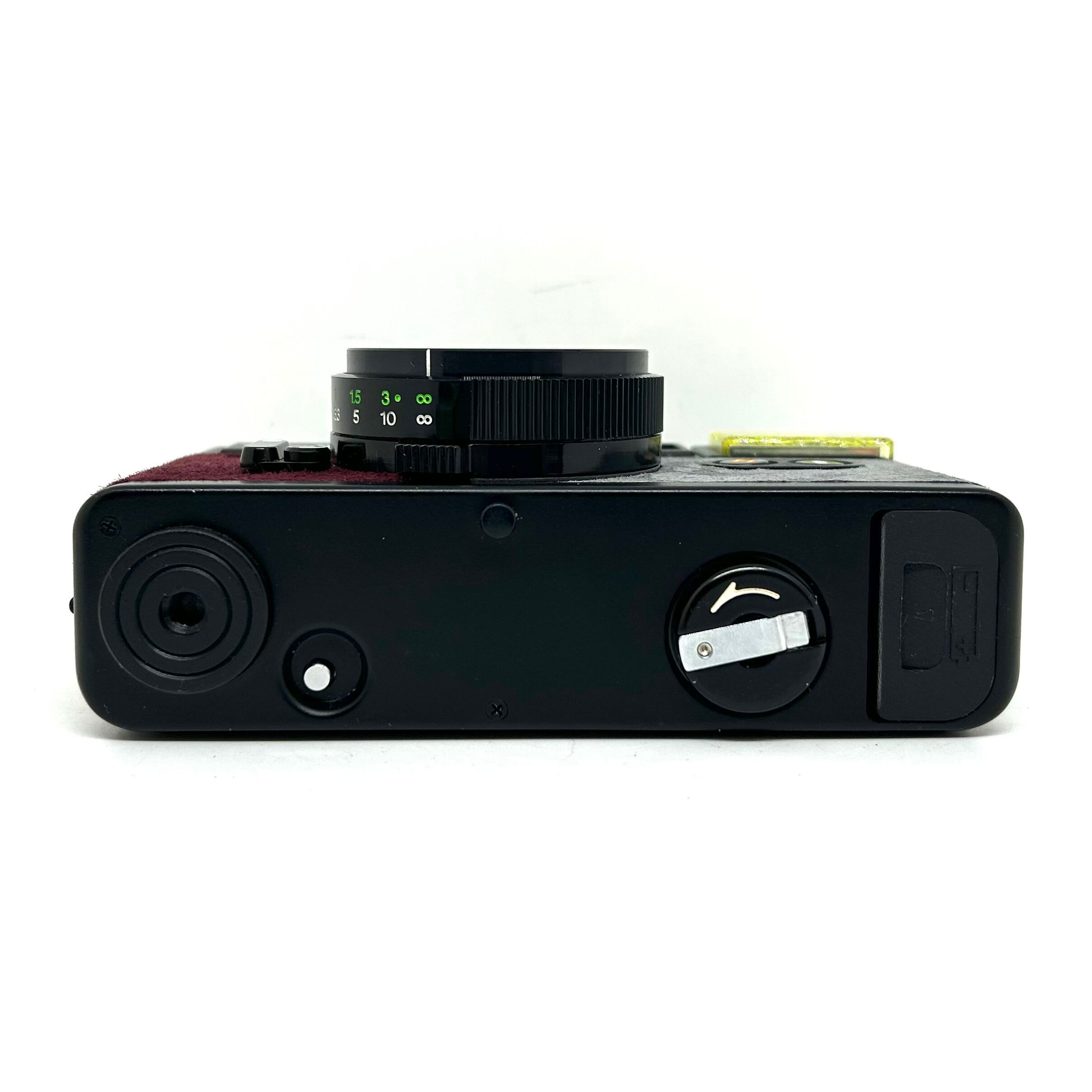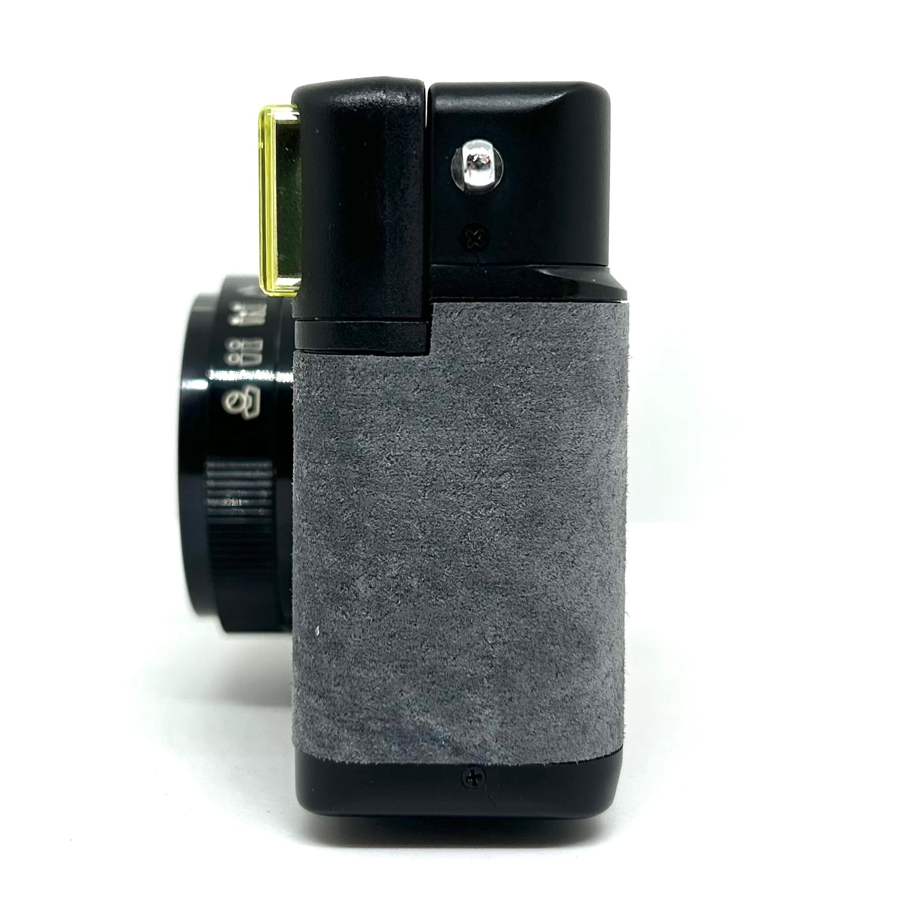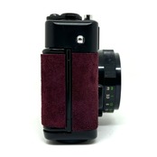 1、フィルムカメラを修理•調整して、表皮をスエードに貼り替えてリメイクしております。